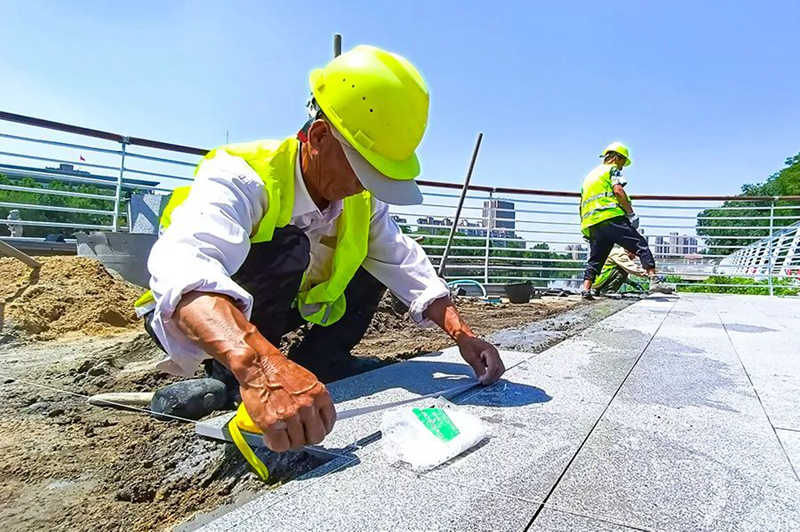 6月3日,在荊河生態景觀提升工程(龍泉大橋至解放大橋段)施工現場,工人們有的在忙著焊接護欄,有的在鋪設地磚,現場一片繁忙景象。荊河生態景觀提升工程(龍泉大橋至解放大橋段)由滕投集團負責建設,博誠路橋公司負責施工,提升改造的原則對原景觀采取“低干預、微改造、精提升”的方式進行,主要施工內容包括濱河